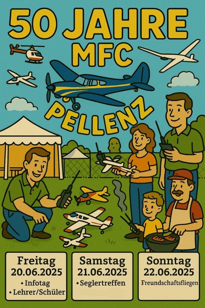 Am Wochenende vom 20.06. bis 22.06. feiert der MFC Pellenz sein 50 jähriges Bestehen und läd hierzu alle Interessierten recht herzlich auf das Fluggelände zwischen Saffig und Bassenheim ein.
