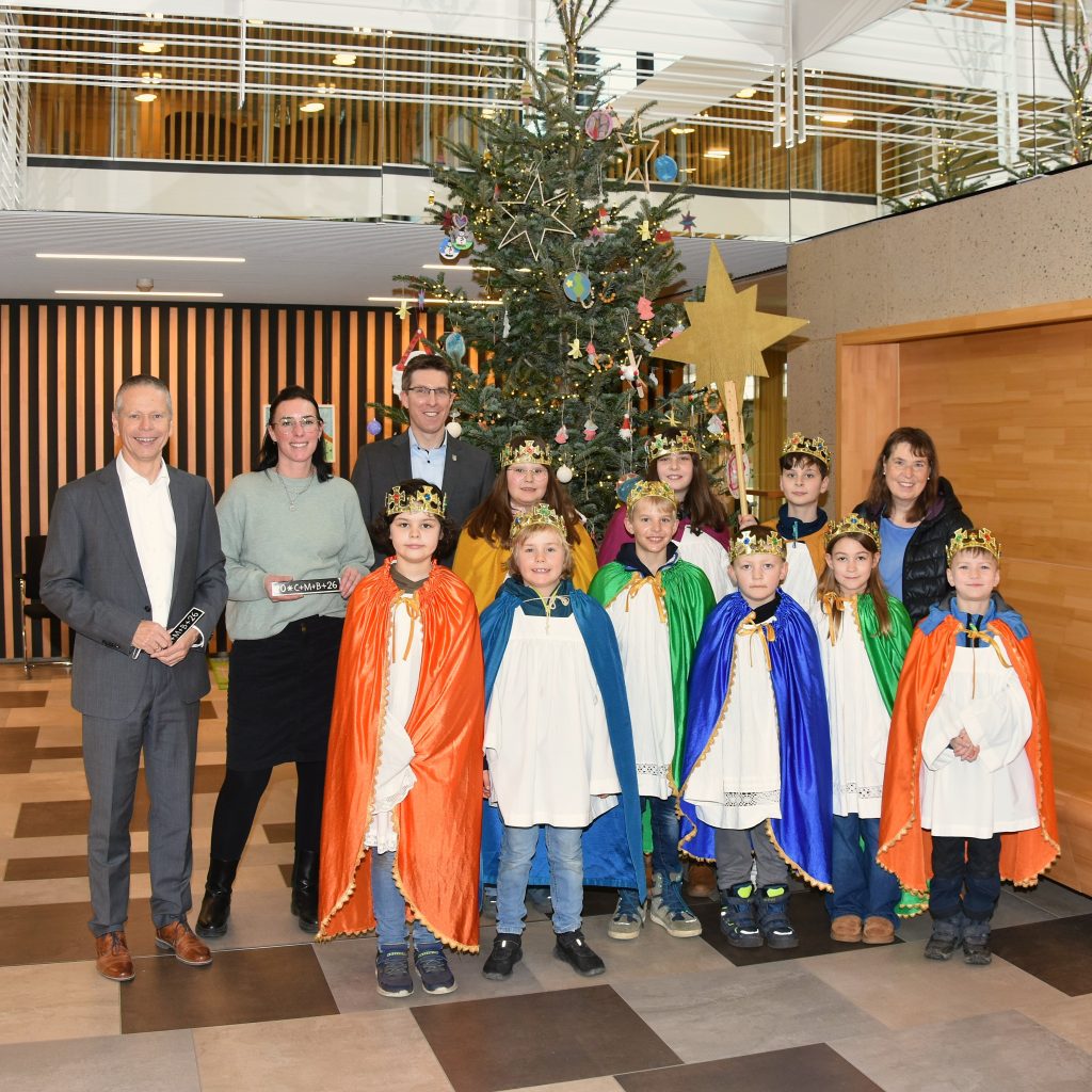 Das Leitwort der diesjährigen, 68. Sternsinger-Aktion heißt „Schule statt Fabrik – Sternsingen gegen Kinderarbeit“. Die Aktion ist die größte Solidaritätsaktion von Kindern für Kinder weltweit. Seit dem Beginn im Jahr 1959 haben die Sternsinger weit über 1 Mrd. Euro an Spendengeldern gesammelt. In diesem Jahr werden die Spenden für Kinder in Bangladesch gesammelt, um ihnen Bildung zu ermöglichen. Der Bürgermeister dankte den Kindern für ihren Einsatz und übergab eine Spende für den guten Zweck. Bevor er die Gruppe und ihre BetreuerInnen mit den besten Wünschen für das neue Jahr 2026 verabschiedete, wurden sie noch mit einem süßen Dankeschön und einem warmen Kakao für ihren Besuch im Rathaus belohnt.